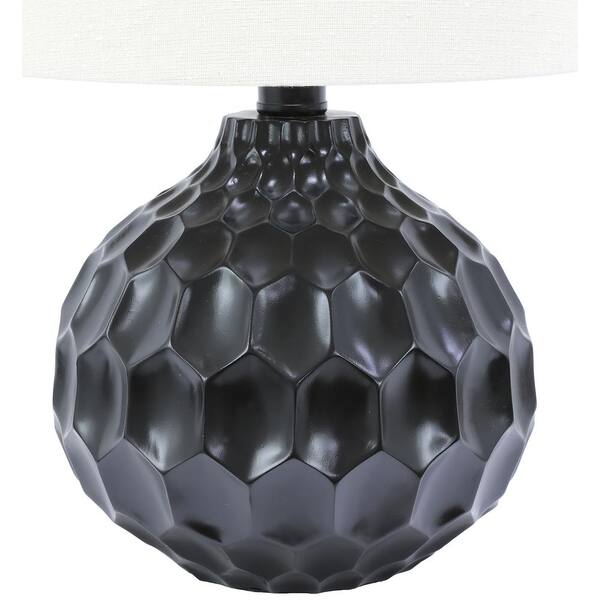 Bing Faceted 14.5 in. Glossy Black Table Lamp with Linen Shade