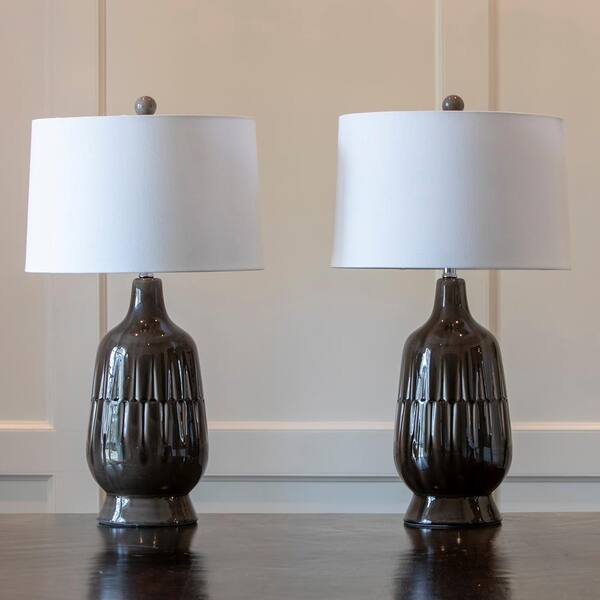 Colton 28.5 in. Purple Crackled Ceramic Table Lamps with Shade (Set of 2)