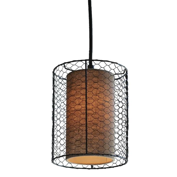 Cooper Chicken Wire Burlap 1-Light Bronze Pendant