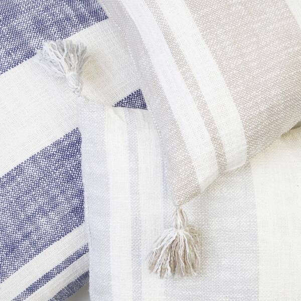 Sophia Stripe 20 x 20 Vintage Indigo Corner Tassel Throw Pillow