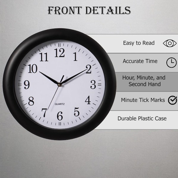 Decorative Classic Black Round Wall Clock For Living Room, Kitchen, Dining Room, Plastic