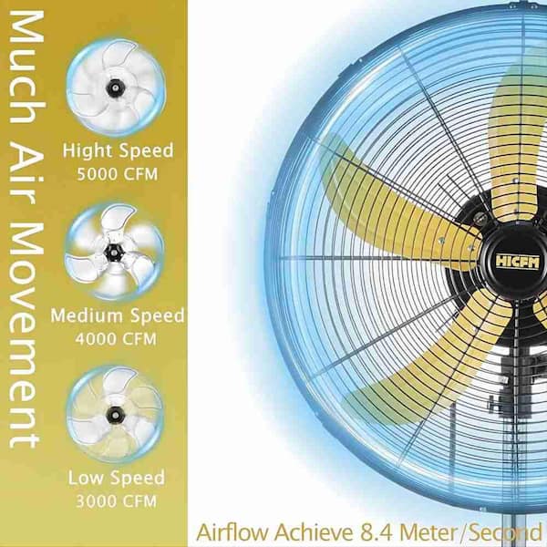 5000 CFM 20 in. heavy-duty High Velocity Pedestal Oscillating Fan with Powerful 1/5 Motor, 9 ft. Power Cord