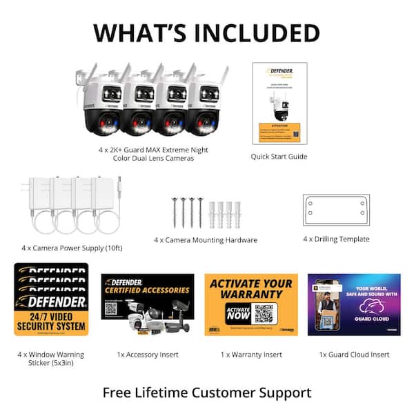 AI POWERED 2K Guard MAX Extreme Night Color Dual Lens PTZ Plug-In Security Camera, 4pc
