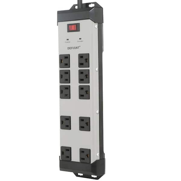 10-Outlet Metal Surge Protector with 15 ft. Cord and 45 Degree Flat Angle Plug