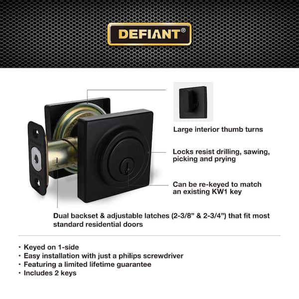 Square Matte Black Single Cylinder Contemporary Deadbolt