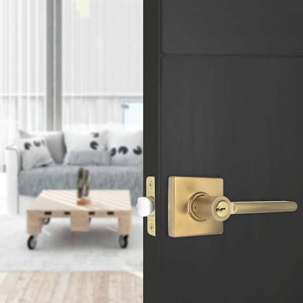Tonebridge Brushed Gold Keyed Entry Door Lever with Square Rose