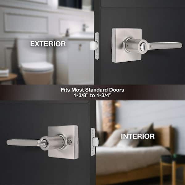 Tonebridge Satin Nickel Bed/Bath Door Lever with Square Rose