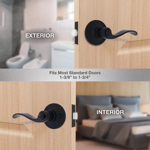 Wave Matte Black Bed/Bath Door Lever 12-Pack