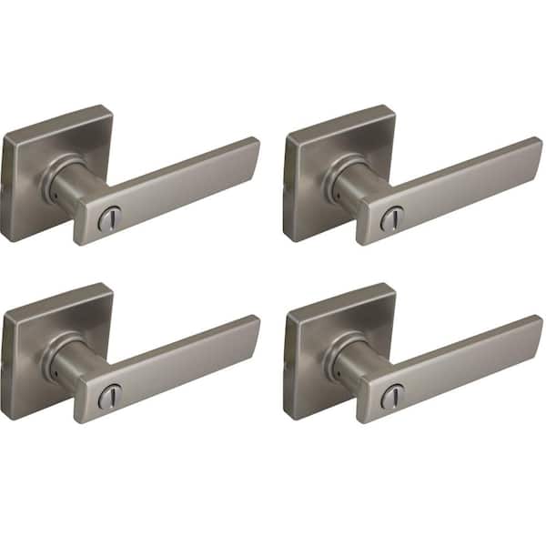 Westwood Satin Nickel Bed and Bath Door Handle with Square Rose (4-Pack)