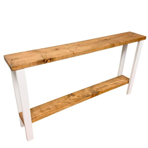 Large Walnut/White Rectangle Wood Console Table with Storage, 58 in.