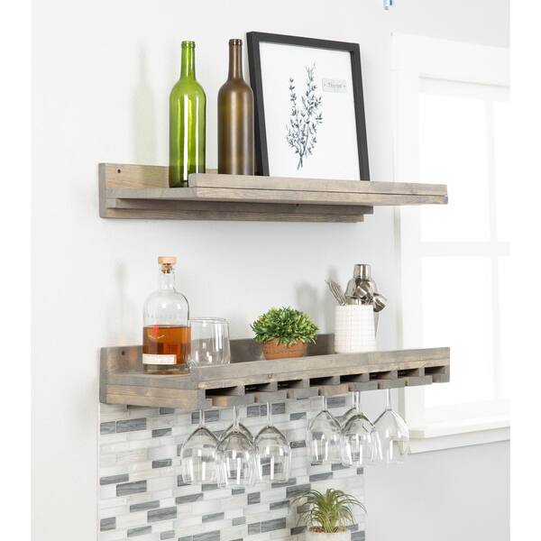 Rustic Luxe 6 in. x 36 in. x 10 in. 2-Tier Wood Shelf and Glass Rack Set