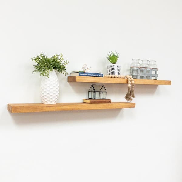 True Floating 5.5 in x 36 in x 2 in Walnut Pine Floating Decorative Wall Shelf with Brackets (Set of 2)