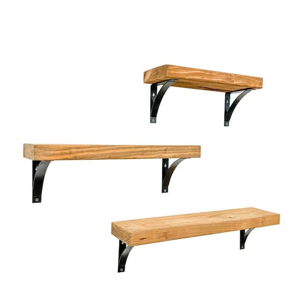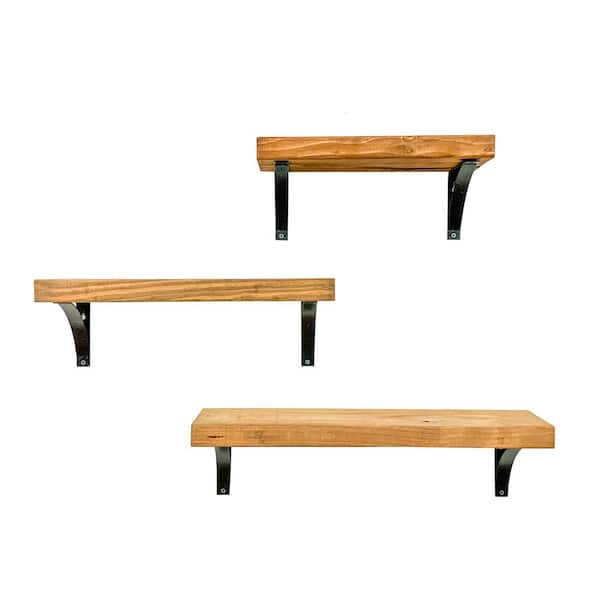 Walnut Industrial Grace Simple Shelves (3-Piece Set 16 in./20 in./24 in.)