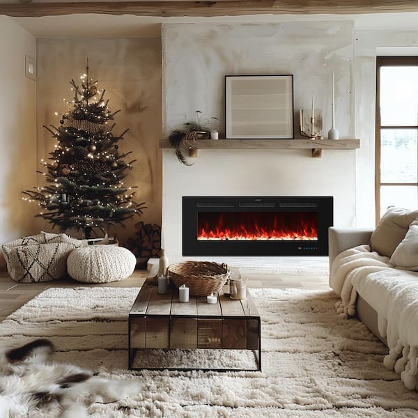 33 in. Electric Fireplace Inserts, Temperature and 1-9 H Timer Wall Mounted Fireplace Heater, Black