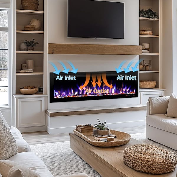 36 in. Electric Fireplace Insert with 4 Pure & 3 Blended Flames, 5-Speeds, Wall/Recessed, Remote, Crystal & Log Effects