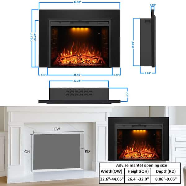 36 in. Electric Fireplace Inserts with Trim Kit, Adjustable Top Light and Flame Brightness