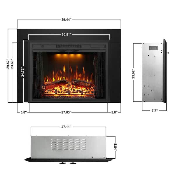 39.4 in. W Electric Fireplace Inserts with Trim Kit, 3-Flames Colors, Glass Door and Mesh Screen, Black