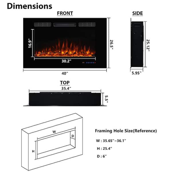 40 in. Electric Fireplace Insert with Voice Control, 1500W, 3 Flame Colors, 5 Flame Brightness, Hardwired, Alexa