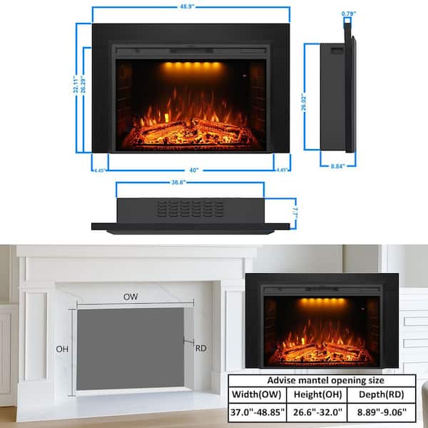 40 in. Electric Fireplace Inserts with Trim Kit, Adjustable Top Light and Flame Brightness