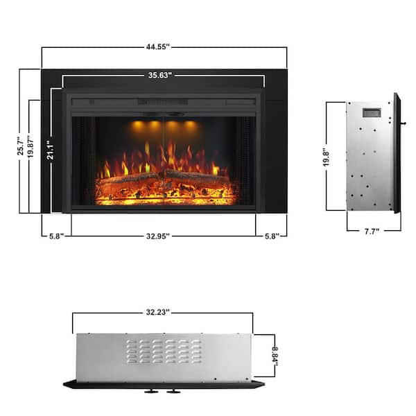 44.5 in. W x 25.7 in. H Electric Fireplace Inserts with Trim Kit, 3 Flames Colors, Glass Door and Mesh Screen, Black