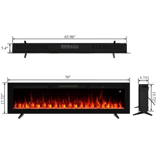 70 in. Electric Fireplace Insert /Fresstanding/Wall-Mounted, 750/1500W, 1-9H Timer, 14 Flame Colors, Remote Control