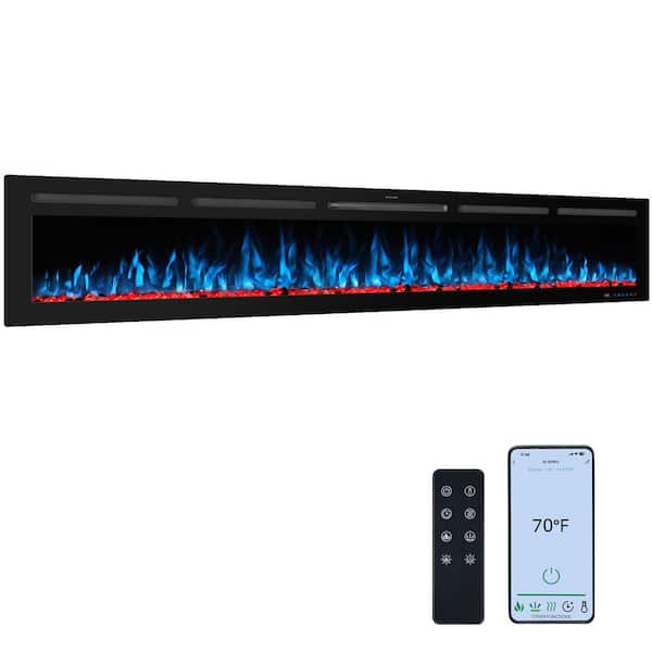 74 in. WiFi Electric Fireplace Inserts, 13-Flame and Fuel Bed Colors, 5-Adjustable Brightness, Timer, Thermostat, Black