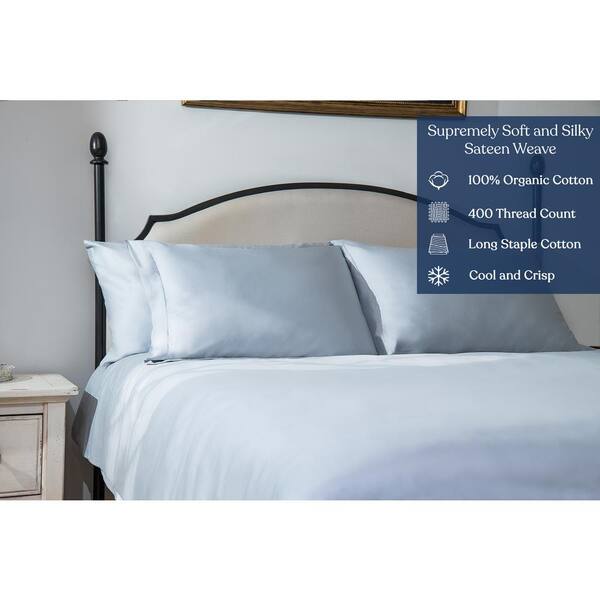 1-Piece Light Blue, Solid 100% Organic Cotton, King (78 in. x 80 in.), Smooth and Breathable, Super Soft, Fitted Sheet