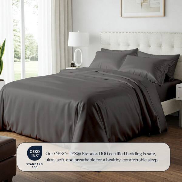 2-Piece 100% Viscose Derived from Bamboo Dark Gray Duvet Set Twin, Ultra-Soft, Includes Duvet Cover and Pillow Sham