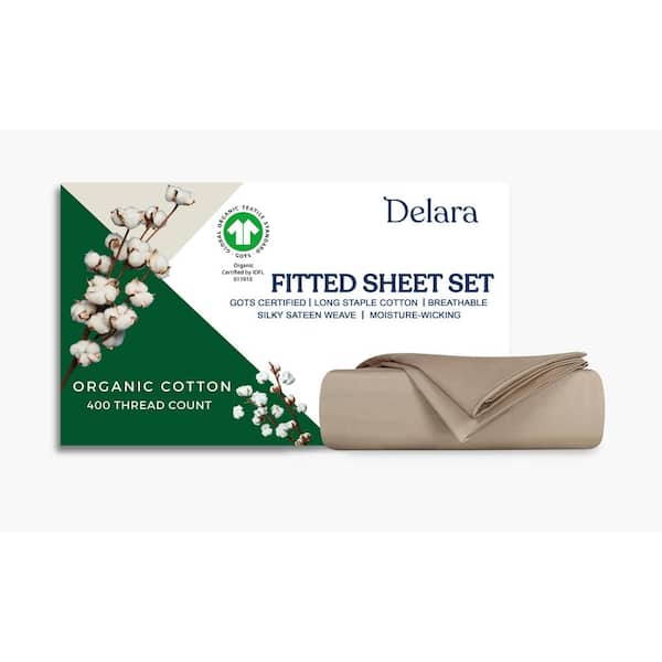 3-Piece Set Natural Solid 100% Organic Cotton Sheets, Queen,Smooth and Breathable,Super Soft Fitted Sheet Sets