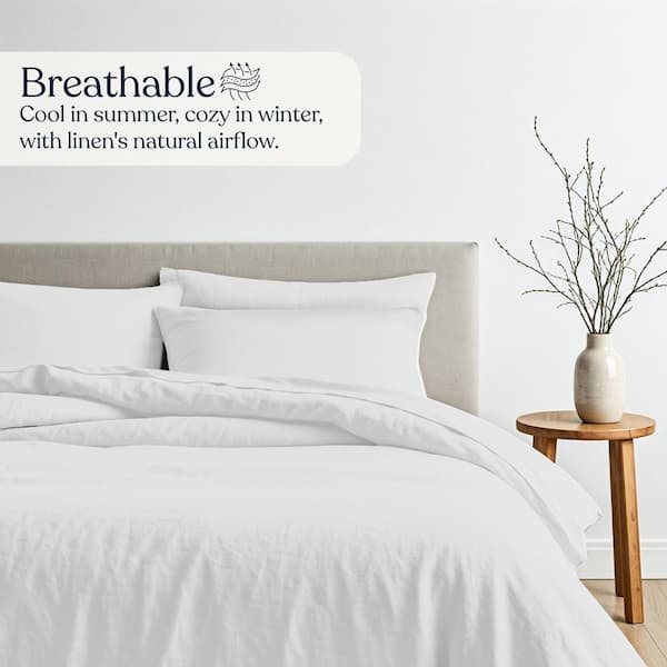 3-Piece Set White Solid Color 100% European Flex Linen, King, Smooth & Breathable, Super Soft, Duvet Cover Sets