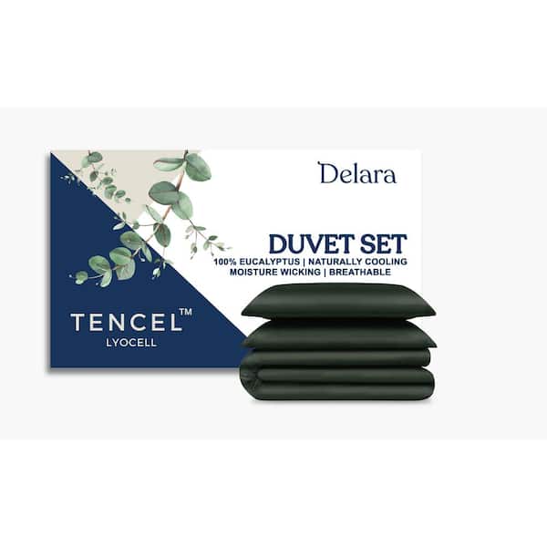 Delara 3-Piece Set Forest Green Solid 100% Eucalyptus Lyocell Tencel, King,Smooth & Breathable,Super Soft Duvet Cover