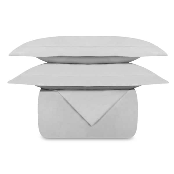 Delara GOTS Certified Organic Cotton, Percale Weave, 400TC, Ultra Soft Breathable, 2-Piece Light Grey Twin Duvet Set