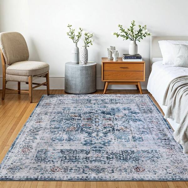 Machine Washable Paisley Misty Azure 8 ft. x 10 ft. Kitchen/Bedroom/Living Room Indoor Area Rug