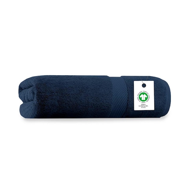 Navy Blue Solid 100% Organic Cotton Luxuriously Plush Bath Towels (Set of 1)