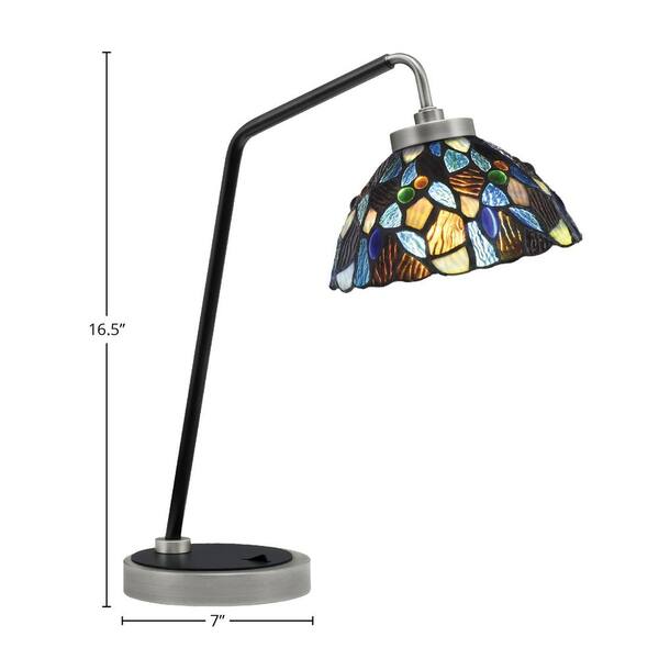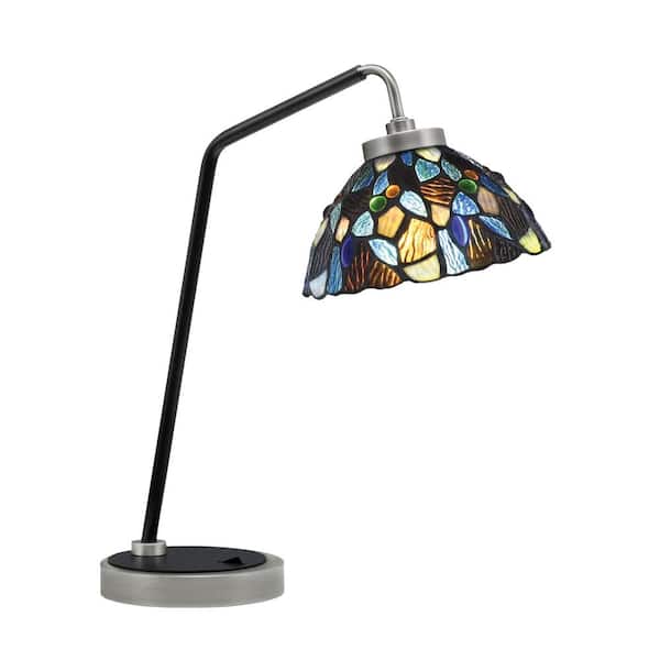 Delgado 16.5 in. Graphite and Matte Black Desk Lamp with Blue Mosaic Art Glass