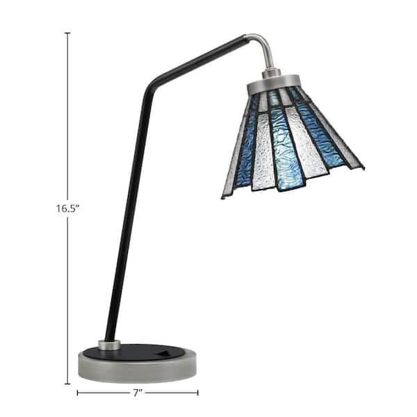 Delgado 16.5 in. Graphite and Matte Black Desk Lamp with Sea Ice Art Glass