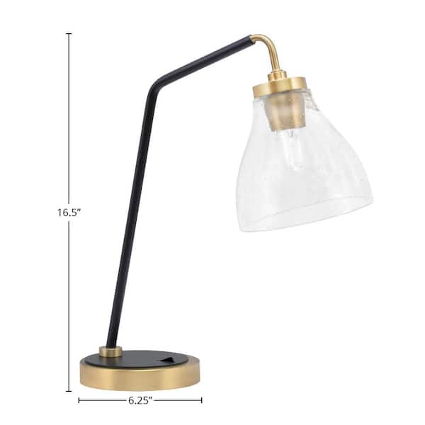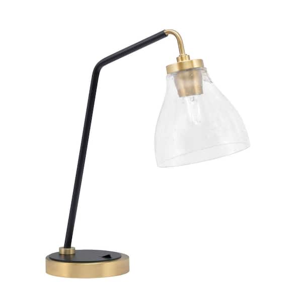 Delgado 16.5 in. Matte Black and New Age Brass Desk Lamp with Clear Bubble Glass