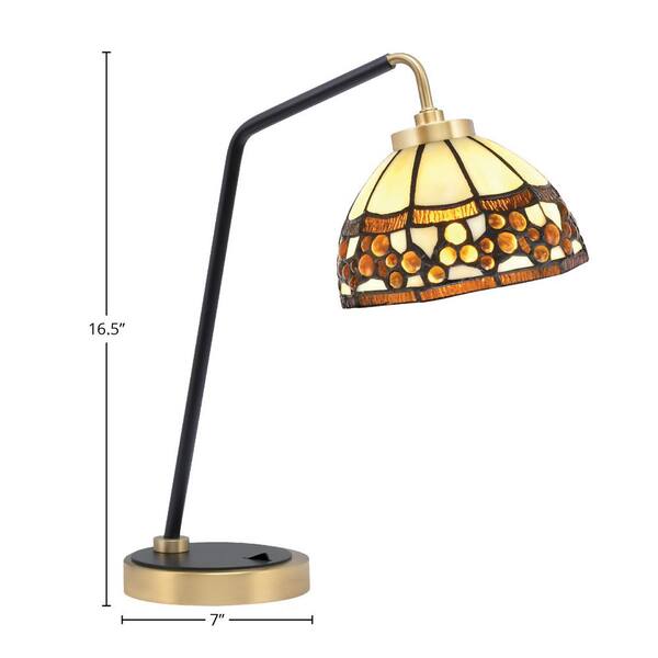 Delgado 16.5 in. Matte Black and New Age Brass Desk Lamp with Roman Jewel Art Glass