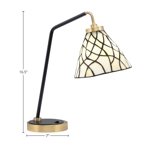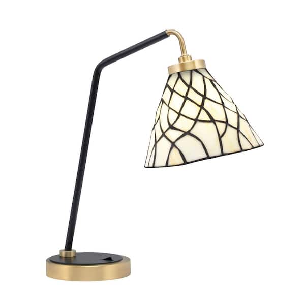 Delgado 16.5 in. Matte Black and New Age Brass Desk Lamp with Sandhill Art Glass