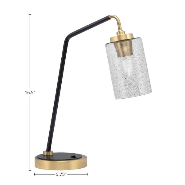 Delgado 16.5 in. Matte Black and New Age Brass Desk Lamp with Smoke Bubble Glass