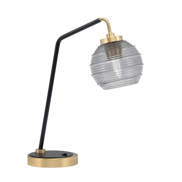 Delgado 16.5 in. Matte Black and New Age Brass Desk Lamp with Smoke Ribbed Glass