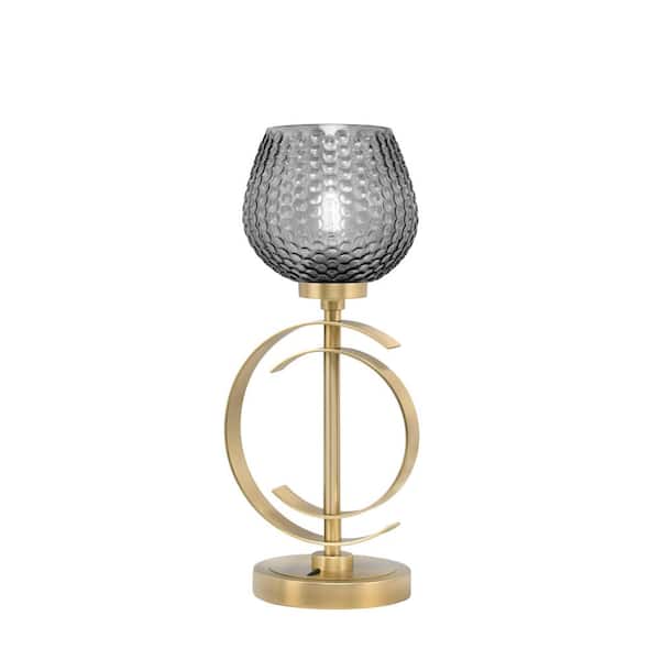 Delgado 16.75 in. New Age Brass Desk Lamp, Piano Desk Lamp, with Clear Ribbed Glass Shade