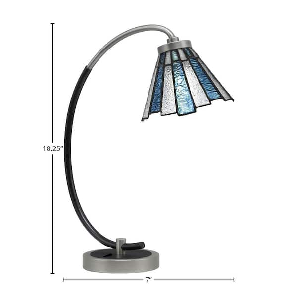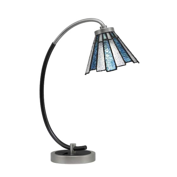 Delgado 18.25 in. Graphite and Matte Black Accent Desk Lamp with Sea Ice Art Glass Shade