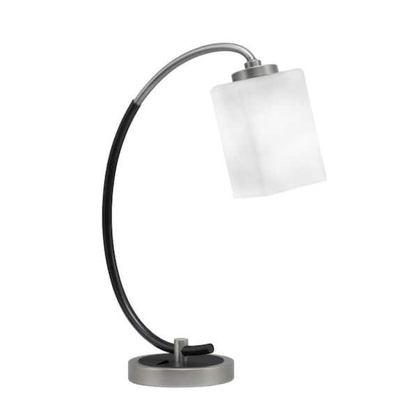 Delgado 18.25 in. Graphite and Matte Black Desk Lamp, Piano Desk Lamp, with White Muslin Glass Shade