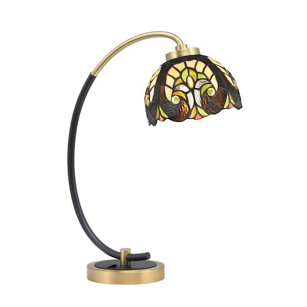 Delgado 18.25 in. Matte Black and New Age Brass Piano Desk Lamp with Ivory Cypress Art Glass Shade