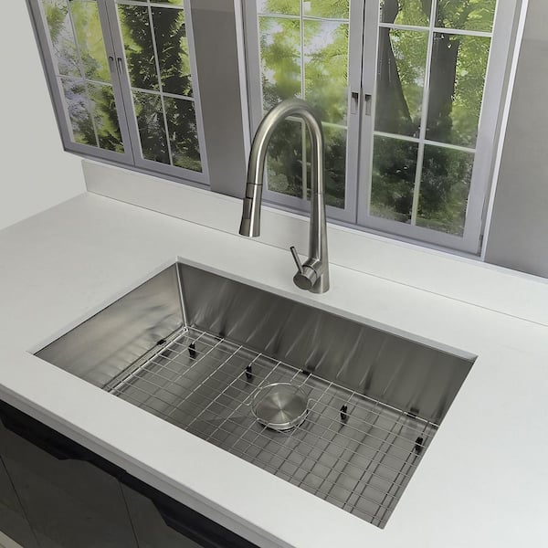 32 in. Undermount Kitchen Sink-16 Gauge Stainless Steel Single Bowl, Modern Design with Grid, Strainer and Drying Rack