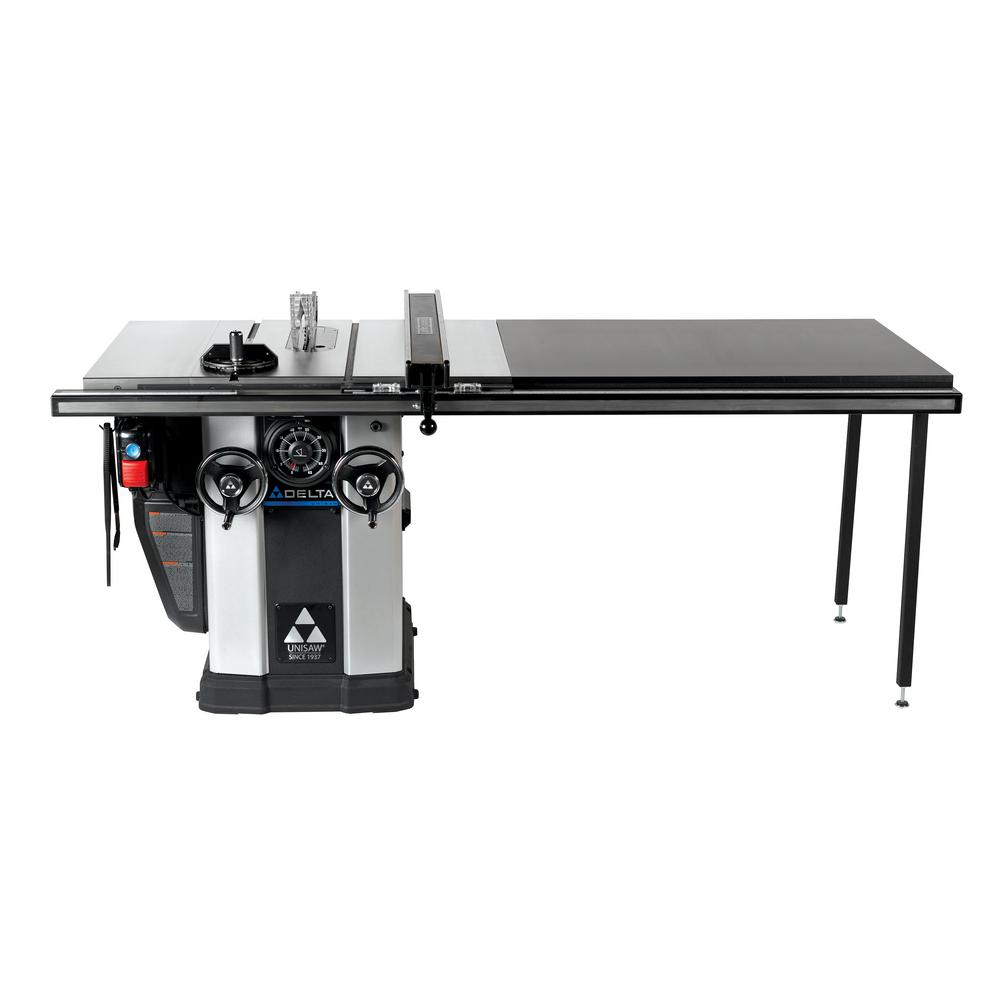The Delta 3 HP Motor 10 in. Unisaw with 52 in. Biesemeyer Fence System is a professional level machine. It has virtually no vibration during operation. It features an On-Board Miter Gauge Storage which is conveniently located on the side of the cabinet and On-Board Wrench and Push Stick Storage are conveniently located beside the switch.