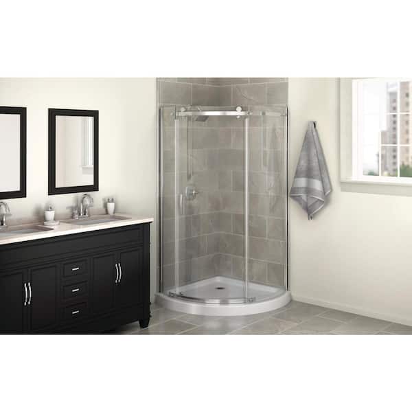 38 in. L x 38 in. W x 72 in. H Corner Shower Kit with Sliding Frameless Shower Door and Shower Pan
