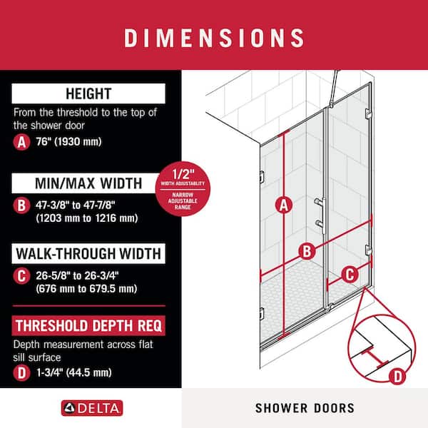 • Fits widths: 47-3/8 to 47-7/8 in. (0.5 in. adjustability only)