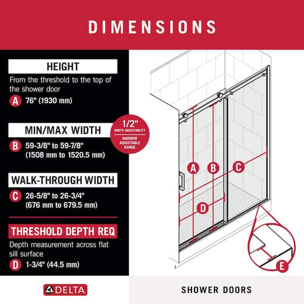 • Fits widths: 59-3/8 to 59-7/8 in. (0.5 in. adjustability only)